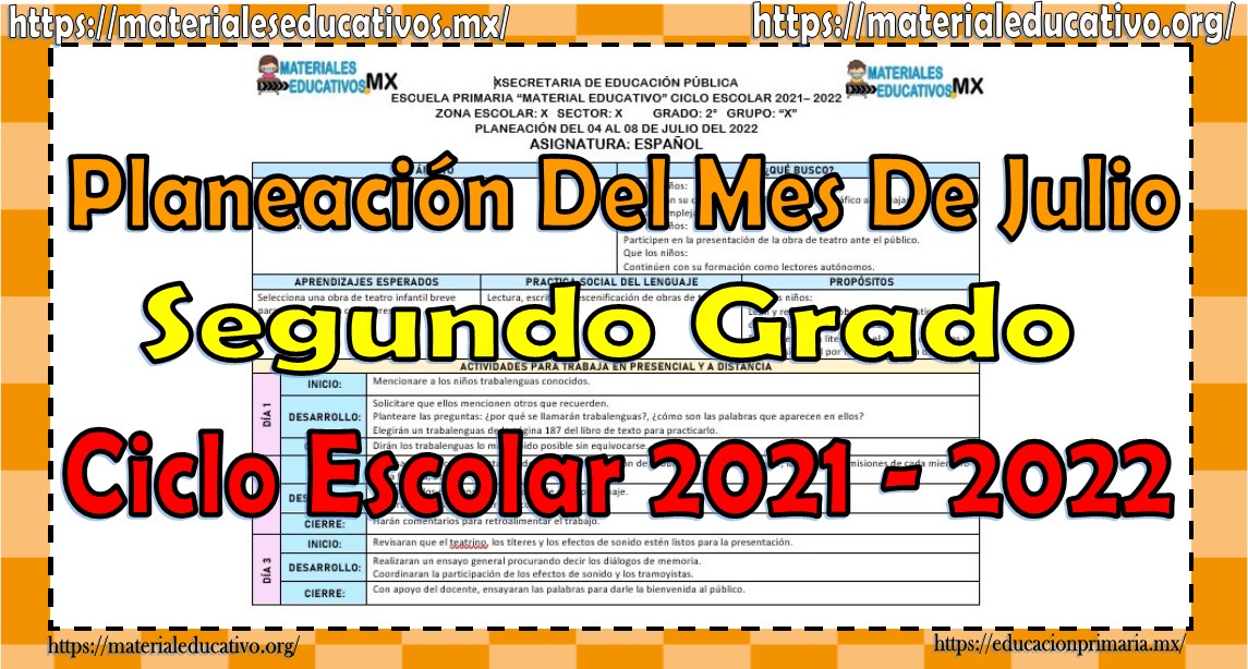 Amigas y amigos docentes queremos compartir con todos ustedes las planeaciones del segundo grado de primaria del mes de julio del ciclo escolar 2021 – 2022, con las que podemos trabajar y adaptar de acuerdo a las necesidades y características de nuestros alumnos durante dicho mes y ciclo escolar, estamos seguros que les será de gran utilidad para su labor educativa, queremos agradecer al autor de este material y nuestro agradecimiento por enviárnosla, muchas gracias por su apoyo y recuerden compartir nuestras publicaciones en sus redes sociales y recuerden etiquetar a sus compañeros y amigos docentes en nuestras publicaciones.