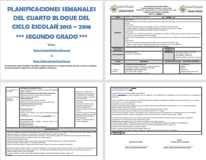 Descargar: Planeaciones del segundo grado del cuarto bloque del ciclo escolar 2015 – 2016