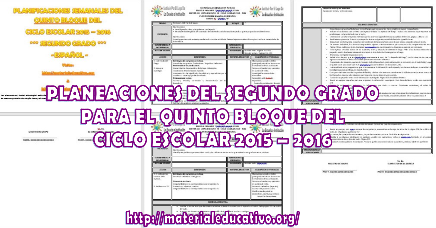 Descargar: Planeaciones del segundo grado para el quinto bloque del ciclo escolar 2015 – 2016