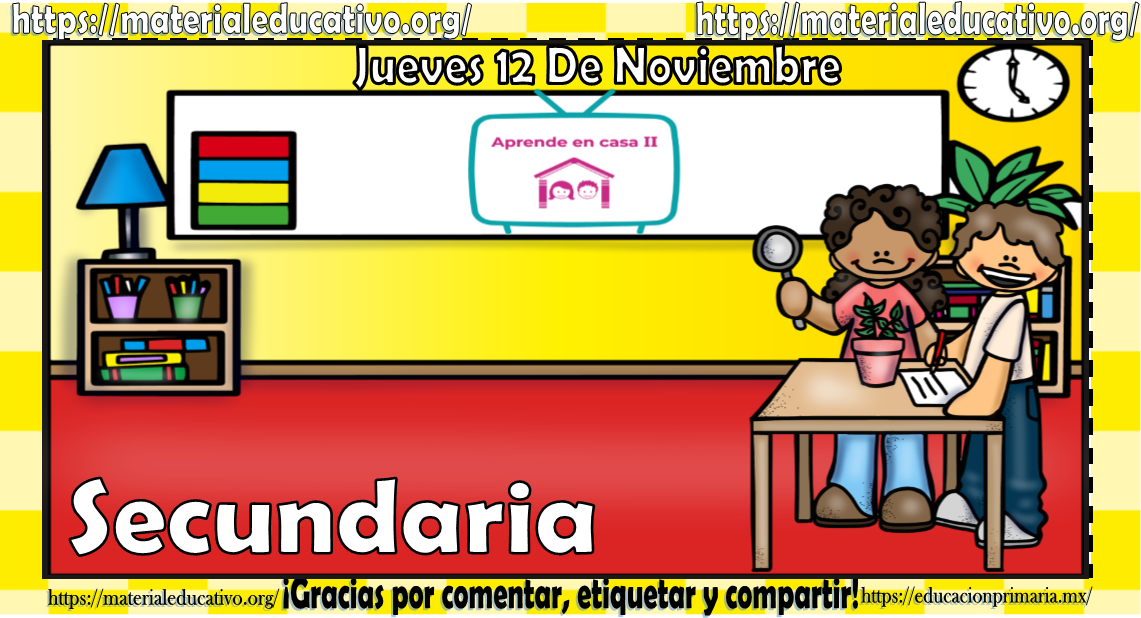 Amigos, compañeros docentes, padres de familia y alumnos que nos visitan, como ya es costumbre nosotros les proporcionaremos las clases contempladas para observarse en la TV del programa aprende en casa II. En esta oportunidad les queremos proporcionar las preguntas y videos de aprender en casa II mis clases de secundaria del jueves 12 de noviembre del 2020 del presente ciclo escolar 2020 – 2021, en sí son las preguntas y videos, estaremos seguros que con este material podrá facilitar la realización de las actividades planteadas por parte del programa. Muchas gracias por visitarnos y recuerden que aquí podrán encontrar las preguntas, videos y todas las clases del programa de aprende en casa 2. Recuerden compartir nuestros enlaces en sus redes sociales y etiquetar a sus compañeros y amigos docentes en nuestras publicaciones.