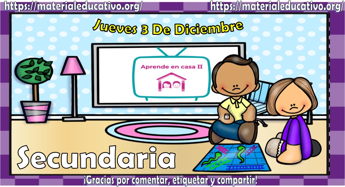Amigos, compañeros docentes, padres de familia y alumnos que nos visitan, como ya es costumbre nosotros les proporcionaremos las clases contempladas para observarse en la TV del programa aprende en casa II. En esta oportunidad les queremos proporcionar las preguntas y videos de aprender en casa II mis clases de secundaria del jueves 3 de diciembre del 2020 del presente ciclo escolar 2020 – 2021, en sí son las preguntas y videos, estaremos seguros que con este material podrá facilitar la realización de las actividades planteadas por parte del programa. Muchas gracias por visitarnos y recuerden que aquí podrán encontrar las preguntas, videos y todas las clases del programa de aprende en casa 2. Recuerden compartir nuestros enlaces en sus redes sociales y etiquetar a sus compañeros y amigos docentes en nuestras publicaciones.