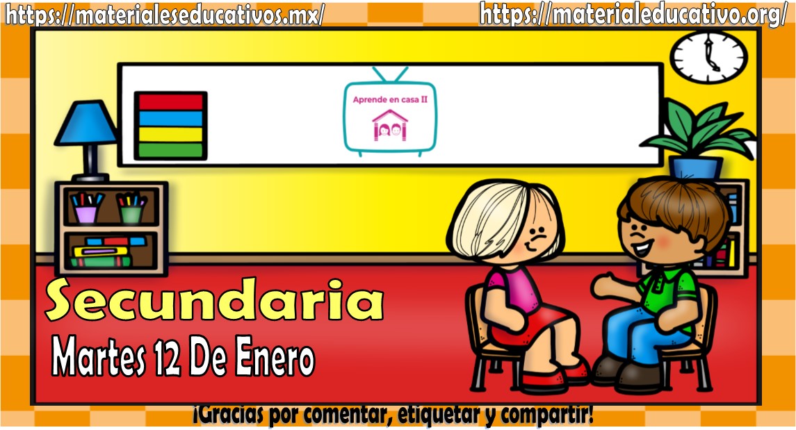 Amigos, compañeros docentes, padres de familia y alumnos que nos visitan, como ya es costumbre nosotros les proporcionaremos las clases contempladas para observarse en la TV del programa aprende en casa II. En esta oportunidad les queremos proporcionar las preguntas y videos de aprender en casa II mis clases de secundaria del martes 12 de enero del 2021 del presente ciclo escolar 2020 – 2021, en sí son las preguntas y videos, estaremos seguros que con este material podrá facilitar la realización de las actividades planteadas por parte del programa. Muchas gracias por visitarnos y recuerden que aquí podrán encontrar las preguntas, videos y todas las clases del programa de aprende en casa 2. Recuerden compartir nuestros enlaces en sus redes sociales y etiquetar a sus compañeros y amigos docentes en nuestras publicaciones.