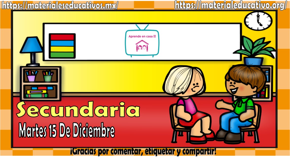 Amigos, compañeros docentes, padres de familia y alumnos que nos visitan, como ya es costumbre nosotros les proporcionaremos las clases contempladas para observarse en la TV del programa aprende en casa II. En esta oportunidad les queremos proporcionar las preguntas y videos de aprender en casa II mis clases de secundaria del martes 15 de diciembre del 2020 del presente ciclo escolar 2020 – 2021, en sí son las preguntas y videos, estaremos seguros que con este material podrá facilitar la realización de las actividades planteadas por parte del programa. Muchas gracias por visitarnos y recuerden que aquí podrán encontrar las preguntas, videos y todas las clases del programa de aprende en casa 2. Recuerden compartir nuestros enlaces en sus redes sociales y etiquetar a sus compañeros y amigos docentes en nuestras publicaciones.