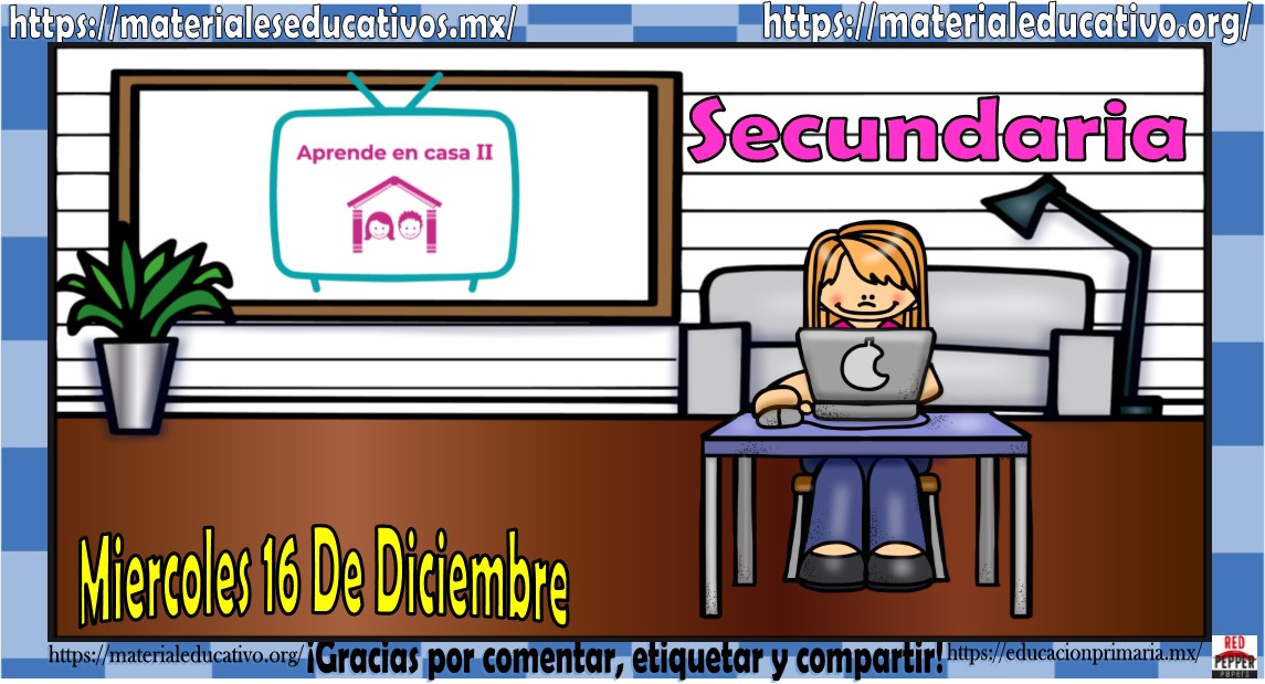 Amigos, compañeros docentes, padres de familia y alumnos que nos visitan, como ya es costumbre nosotros les proporcionaremos las clases contempladas para observarse en la TV del programa aprende en casa II. En esta oportunidad les queremos proporcionar las preguntas y videos de aprender en casa II mis clases de secundaria del miércoles 16 de diciembre del 2020 del presente ciclo escolar 2020 – 2021, en sí son las preguntas y videos, estaremos seguros que con este material podrá facilitar la realización de las actividades planteadas por parte del programa. Muchas gracias por visitarnos y recuerden que aquí podrán encontrar las preguntas, videos y todas las clases del programa de aprende en casa 2. Recuerden compartir nuestros enlaces en sus redes sociales y etiquetar a sus compañeros y amigos docentes en nuestras publicaciones.