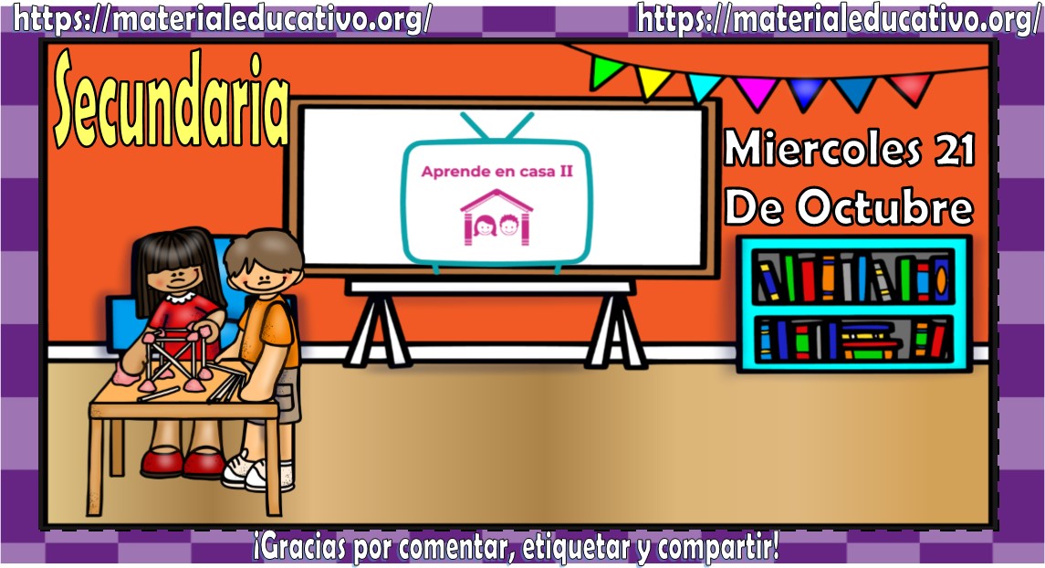 Amigos, compañeros docentes, padres de familia y alumnos que nos visitan, como ya es costumbre nosotros les proporcionaremos las clases contempladas para observarse en la TV del programa aprende en casa II. En esta oportunidad les queremos proporcionar las preguntas y videos de aprender en casa II mis clases de secundaria del miércoles 21 de octubre del 2020 del presente ciclo escolar 2020 – 2021, en sí son las preguntas y videos, estaremos seguros que con este material podrá facilitar la realización de las actividades planteadas por parte del programa. Muchas gracias por visitarnos y recuerden que aquí podrán encontrar las preguntas, videos y todas las clases del programa de aprende en casa 2. Recuerden compartir nuestros enlaces en sus redes sociales y etiquetar a sus compañeros y amigos docentes en nuestras publicaciones.