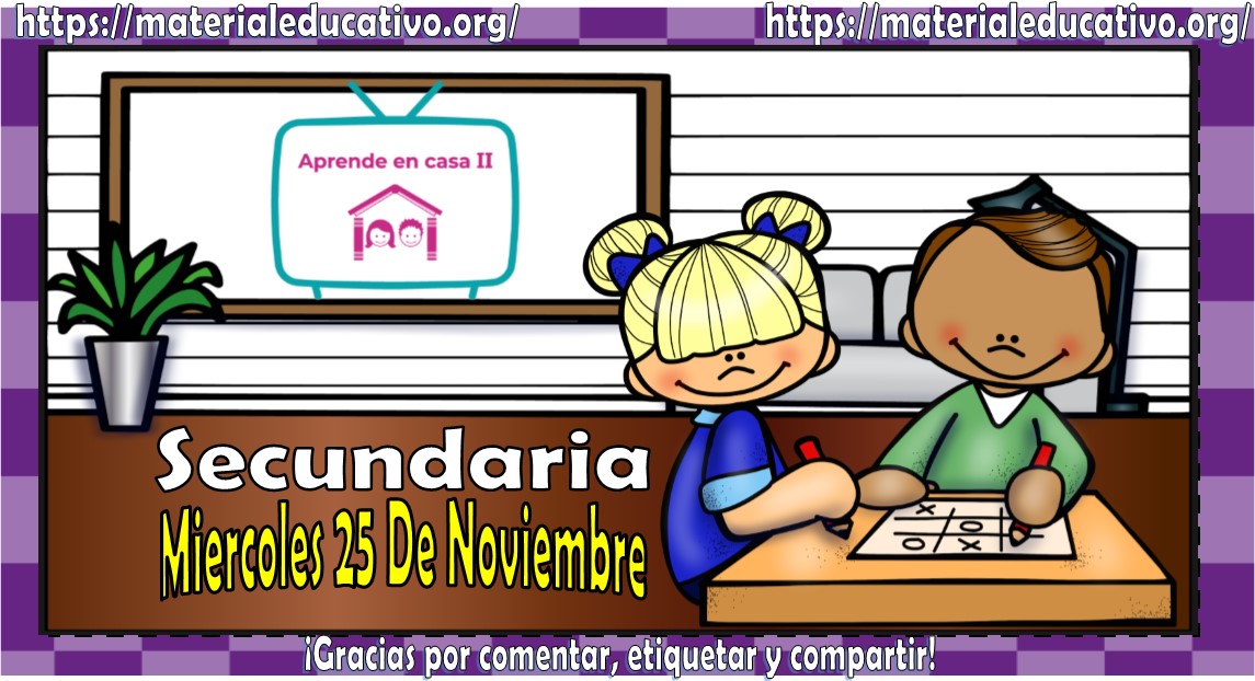 Amigos, compañeros docentes, padres de familia y alumnos que nos visitan, como ya es costumbre nosotros les proporcionaremos las clases contempladas para observarse en la TV del programa aprende en casa II. En esta oportunidad les queremos proporcionar las preguntas y videos de aprender en casa II mis clases de secundaria del miércoles 25 de noviembre del 2020 del presente ciclo escolar 2020 – 2021, en sí son las preguntas y videos, estaremos seguros que con este material podrá facilitar la realización de las actividades planteadas por parte del programa. Muchas gracias por visitarnos y recuerden que aquí podrán encontrar las preguntas, videos y todas las clases del programa de aprende en casa 2. Recuerden compartir nuestros enlaces en sus redes sociales y etiquetar a sus compañeros y amigos docentes en nuestras publicaciones.