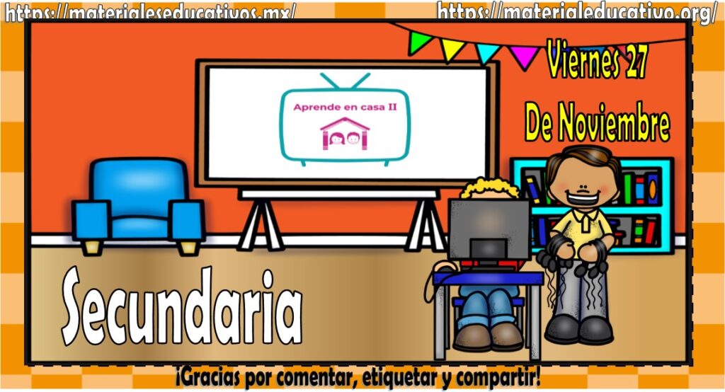 Amigos, compañeros docentes, padres de familia y alumnos que nos visitan, como ya es costumbre nosotros les proporcionaremos las clases contempladas para observarse en la TV del programa aprende en casa II. En esta oportunidad les queremos proporcionar las preguntas y videos de aprender en casa II mis clases de secundaria del viernes 27 de noviembre del 2020 del presente ciclo escolar 2020 – 2021, en sí son las preguntas y videos, estaremos seguros que con este material podrá facilitar la realización de las actividades planteadas por parte del programa. Muchas gracias por visitarnos y recuerden que aquí podrán encontrar las preguntas, videos y todas las clases del programa de aprende en casa 2. Recuerden compartir nuestros enlaces en sus redes sociales y etiquetar a sus compañeros y amigos docentes en nuestras publicaciones.