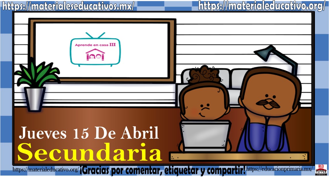 Amigos, compañeros docentes, padres de familia y alumnos que nos visitan, como ya es costumbre nosotros les proporcionaremos las clases contempladas para observarse en la TV del programa aprende en casa III. En esta oportunidad les queremos proporcionar las preguntas y videos de aprender en casa III mis clases de secundaria del jueves 15 de abril del 2021 del presente ciclo escolar 2020 – 2021, en sí son las preguntas y videos, estaremos seguros que con este material podrá facilitar la realización de las actividades planteadas por parte del programa. Muchas gracias por visitarnos y recuerden que aquí podrán encontrar las preguntas, videos y todas las clases del programa de aprende en casa 2. Recuerden compartir nuestros enlaces en sus redes sociales y etiquetar a sus compañeros y amigos docentes en nuestras publicaciones.