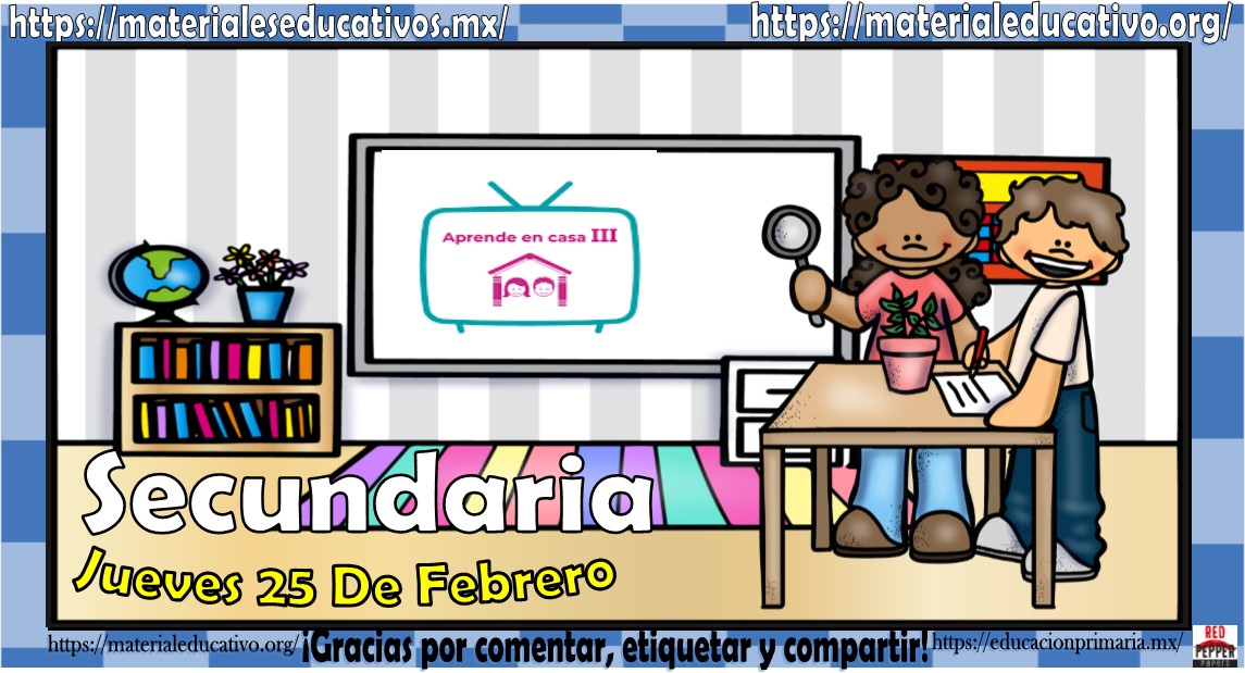 Amigos, compañeros docentes, padres de familia y alumnos que nos visitan, como ya es costumbre nosotros les proporcionaremos las clases contempladas para observarse en la TV del programa aprende en casa III. En esta oportunidad les queremos proporcionar las preguntas y videos de aprender en casa III mis clases de secundaria del jueves 25 de febrero del 2021 del presente ciclo escolar 2020 – 2021, en sí son las preguntas y videos, estaremos seguros que con este material podrá facilitar la realización de las actividades planteadas por parte del programa. Muchas gracias por visitarnos y recuerden que aquí podrán encontrar las preguntas, videos y todas las clases del programa de aprende en casa 2. Recuerden compartir nuestros enlaces en sus redes sociales y etiquetar a sus compañeros y amigos docentes en nuestras publicaciones.