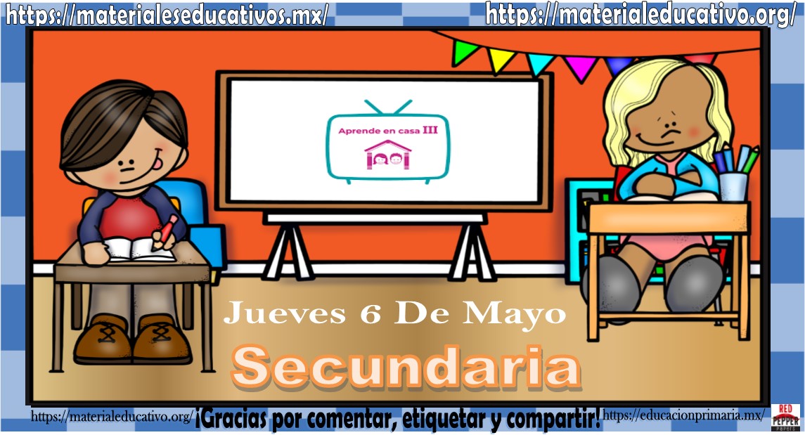 Amigos, compañeros docentes, padres de familia y alumnos que nos visitan, como ya es costumbre nosotros les proporcionaremos las clases contempladas para observarse en la TV del programa aprende en casa III. En esta oportunidad les queremos proporcionar las preguntas y videos de aprender en casa III mis clases de secundaria del jueves 6 de mayo del 2021 del presente ciclo escolar 2020 – 2021, en sí son las preguntas y videos, estaremos seguros que con este material podrá facilitar la realización de las actividades planteadas por parte del programa. Muchas gracias por visitarnos y recuerden que aquí podrán encontrar las preguntas, videos y todas las clases del programa de aprende en casa 2. Recuerden compartir nuestros enlaces en sus redes sociales y etiquetar a sus compañeros y amigos docentes en nuestras publicaciones.