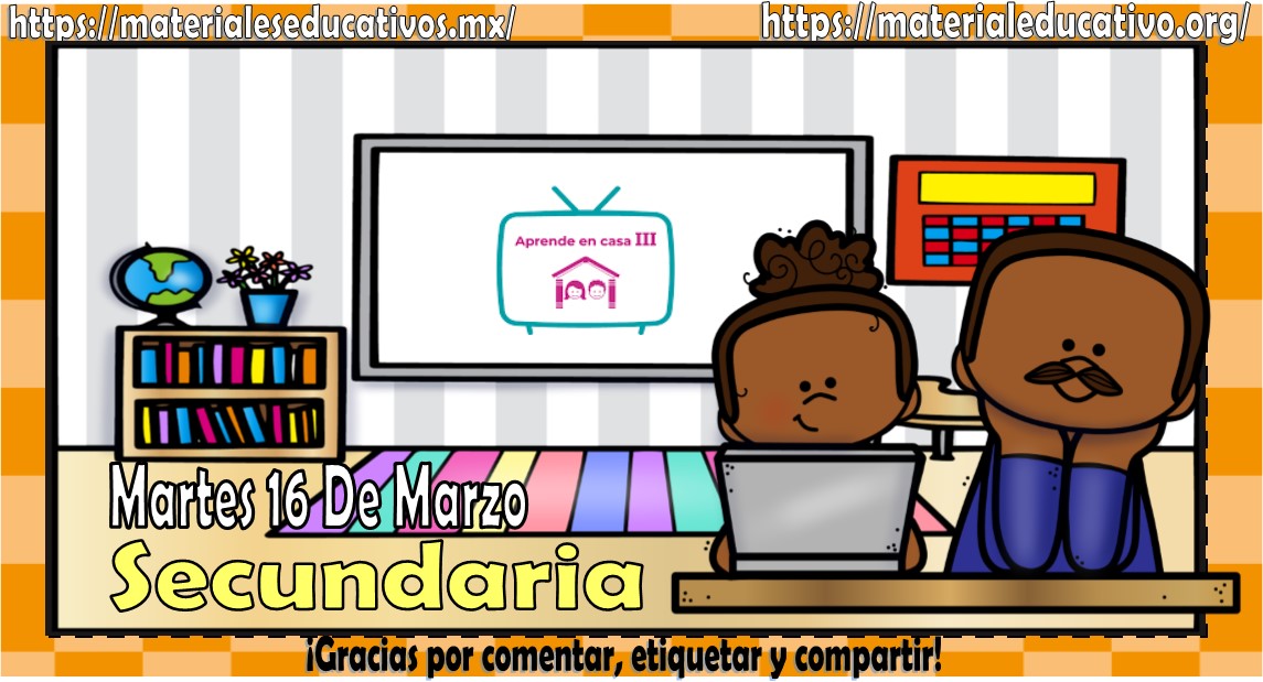 Amigos, compañeros docentes, padres de familia y alumnos que nos visitan, como ya es costumbre nosotros les proporcionaremos las clases contempladas para observarse en la TV del programa aprende en casa III. En esta oportunidad les queremos proporcionar las preguntas y videos de aprender en casa III mis clases de secundaria del martes 16 de marzo del 2021 del presente ciclo escolar 2020 – 2021, en sí son las preguntas y videos, estaremos seguros que con este material podrá facilitar la realización de las actividades planteadas por parte del programa. Muchas gracias por visitarnos y recuerden que aquí podrán encontrar las preguntas, videos y todas las clases del programa de aprende en casa 2. Recuerden compartir nuestros enlaces en sus redes sociales y etiquetar a sus compañeros y amigos docentes en nuestras publicaciones.