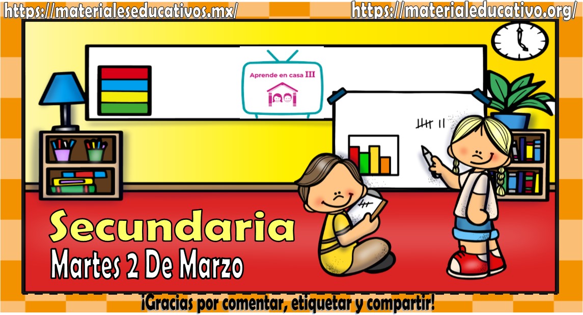 Amigos, compañeros docentes, padres de familia y alumnos que nos visitan, como ya es costumbre nosotros les proporcionaremos las clases contempladas para observarse en la TV del programa aprende en casa III. En esta oportunidad les queremos proporcionar las preguntas y videos de aprender en casa III mis clases de secundaria del martes 2 de marzo del 2021 del presente ciclo escolar 2020 – 2021, en sí son las preguntas y videos, estaremos seguros que con este material podrá facilitar la realización de las actividades planteadas por parte del programa. Muchas gracias por visitarnos y recuerden que aquí podrán encontrar las preguntas, videos y todas las clases del programa de aprende en casa 2. Recuerden compartir nuestros enlaces en sus redes sociales y etiquetar a sus compañeros y amigos docentes en nuestras publicaciones.