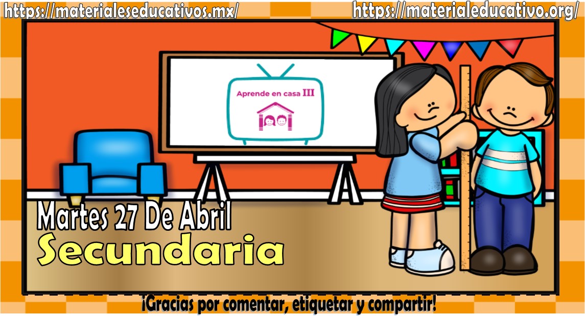 Amigos, compañeros docentes, padres de familia y alumnos que nos visitan, como ya es costumbre nosotros les proporcionaremos las clases contempladas para observarse en la TV del programa aprende en casa III. En esta oportunidad les queremos proporcionar las preguntas y videos de aprender en casa III mis clases de secundaria del martes 27 de abril del 2021 del presente ciclo escolar 2020 – 2021, en sí son las preguntas y videos, estaremos seguros que con este material podrá facilitar la realización de las actividades planteadas por parte del programa. Muchas gracias por visitarnos y recuerden que aquí podrán encontrar las preguntas, videos y todas las clases del programa de aprende en casa 2. Recuerden compartir nuestros enlaces en sus redes sociales y etiquetar a sus compañeros y amigos docentes en nuestras publicaciones.