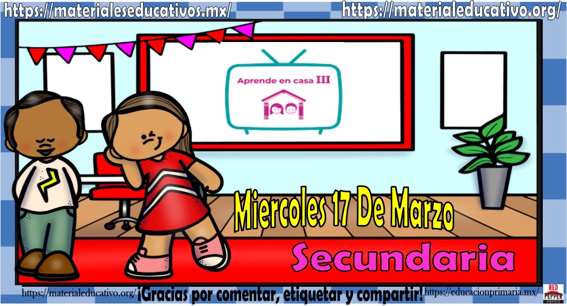 Amigos, compañeros docentes, padres de familia y alumnos que nos visitan, como ya es costumbre nosotros les proporcionaremos las clases contempladas para observarse en la TV del programa aprende en casa III. En esta oportunidad les queremos proporcionar las preguntas y videos de aprender en casa III mis clases de secundaria del miércoles 17 de marzo del 2021 del presente ciclo escolar 2020 – 2021, en sí son las preguntas y videos, estaremos seguros que con este material podrá facilitar la realización de las actividades planteadas por parte del programa. Muchas gracias por visitarnos y recuerden que aquí podrán encontrar las preguntas, videos y todas las clases del programa de aprende en casa 2. Recuerden compartir nuestros enlaces en sus redes sociales y etiquetar a sus compañeros y amigos docentes en nuestras publicaciones.