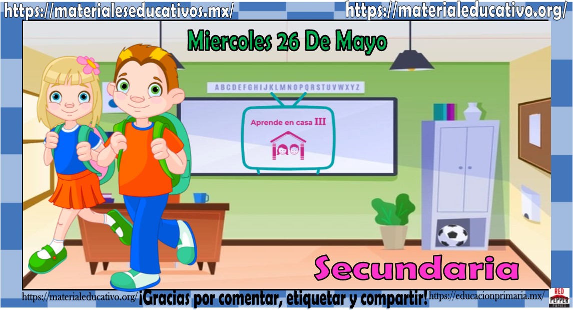Amigos, compañeros docentes, padres de familia y alumnos que nos visitan, como ya es costumbre nosotros les proporcionaremos las clases contempladas para observarse en la TV del programa aprende en casa III. En esta oportunidad les queremos proporcionar las preguntas y videos de aprender en casa III mis clases de secundaria del miércoles 26 de mayo del 2021 del presente ciclo escolar 2020 – 2021, en sí son las preguntas y videos, estaremos seguros que con este material podrá facilitar la realización de las actividades planteadas por parte del programa. Muchas gracias por visitarnos y recuerden que aquí podrán encontrar las preguntas, videos y todas las clases del programa de aprende en casa 2. Recuerden compartir nuestros enlaces en sus redes sociales y etiquetar a sus compañeros y amigos docentes en nuestras publicaciones.
