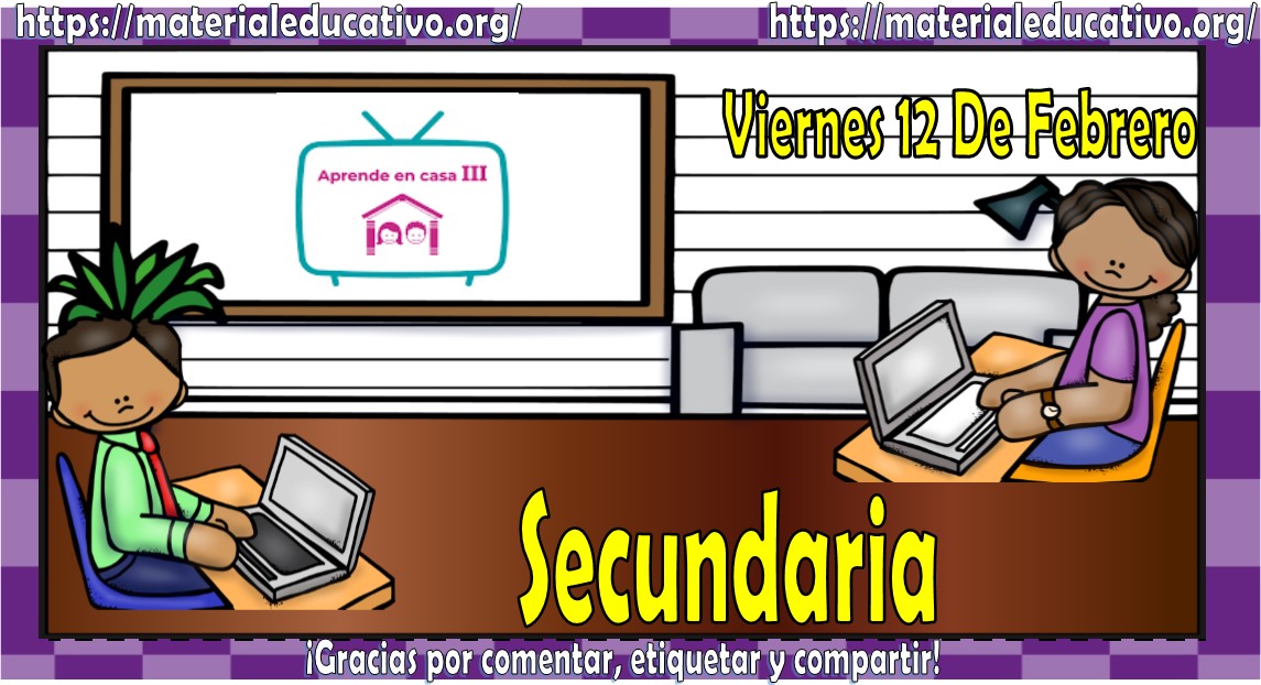Amigos, compañeros docentes, padres de familia y alumnos que nos visitan, como ya es costumbre nosotros les proporcionaremos las clases contempladas para observarse en la TV del programa aprende en casa III. En esta oportunidad les queremos proporcionar las preguntas y videos de aprender en casa III mis clases de secundaria del viernes 12 de febrero del 2021 del presente ciclo escolar 2020 – 2021, en sí son las preguntas y videos, estaremos seguros que con este material podrá facilitar la realización de las actividades planteadas por parte del programa. Muchas gracias por visitarnos y recuerden que aquí podrán encontrar las preguntas, videos y todas las clases del programa de aprende en casa 2. Recuerden compartir nuestros enlaces en sus redes sociales y etiquetar a sus compañeros y amigos docentes en nuestras publicaciones.