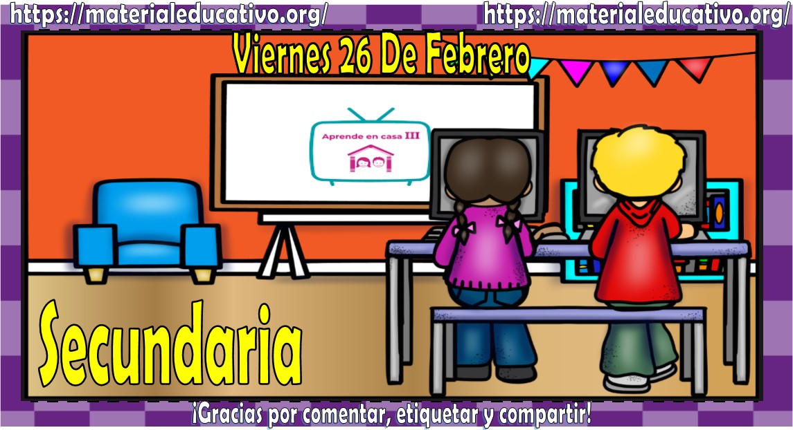 Amigos, compañeros docentes, padres de familia y alumnos que nos visitan, como ya es costumbre nosotros les proporcionaremos las clases contempladas para observarse en la TV del programa aprende en casa III. En esta oportunidad les queremos proporcionar las preguntas y videos de aprender en casa III mis clases de secundaria del viernes 26 de febrero del 2021 del presente ciclo escolar 2020 – 2021, en sí son las preguntas y videos, estaremos seguros que con este material podrá facilitar la realización de las actividades planteadas por parte del programa. Muchas gracias por visitarnos y recuerden que aquí podrán encontrar las preguntas, videos y todas las clases del programa de aprende en casa 2. Recuerden compartir nuestros enlaces en sus redes sociales y etiquetar a sus compañeros y amigos docentes en nuestras publicaciones.