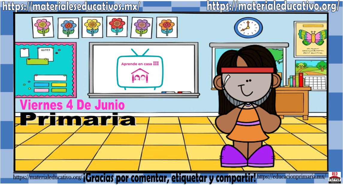 Amigos, compañeros docentes, padres de familia y alumnos que nos visitan, como ya es costumbre nosotros les proporcionaremos las clases contempladas para observarse en la TV del programa aprende en casa III. En esta oportunidad les queremos proporcionar las preguntas y videos de mis clases de aprende en casa III de primaria del día viernes 4 de junio del 2021 del presente ciclo escolar 2020 – 2021, estaremos seguros que con este material podrá facilitar la realización de las actividades planteadas por parte del programa. Muchas gracias por visitarnos y recuerden que aquí podrán encontrar las preguntas, videos y todas las clases del programa de aprende en casa 3. Recuerden compartir nuestros enlaces en sus redes sociales y etiquetar a sus compañeros y amigos docentes en nuestras publicaciones.