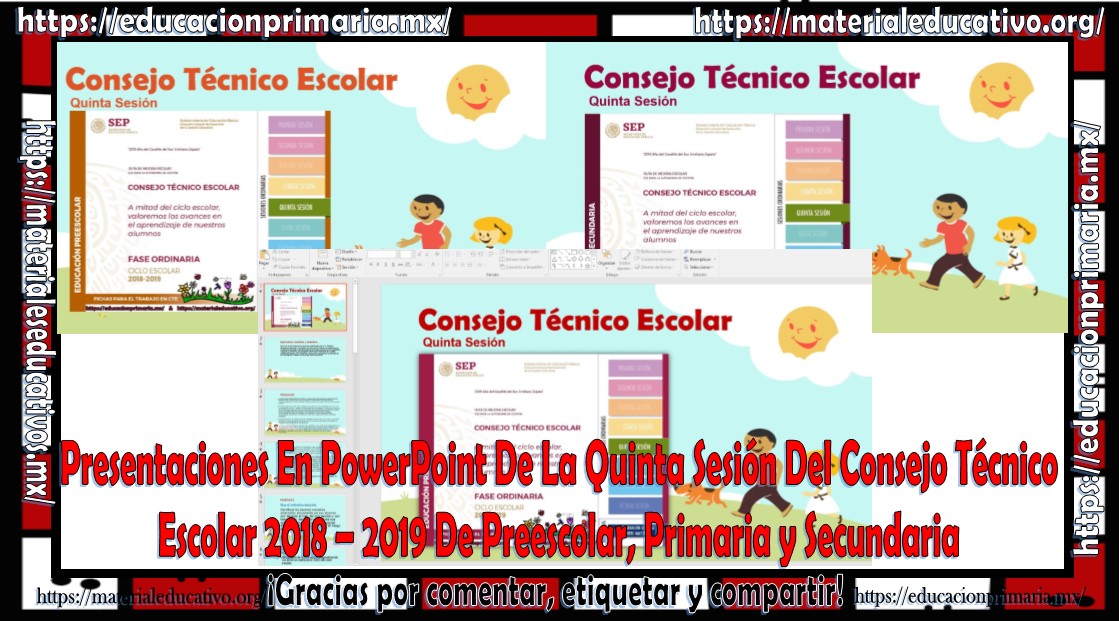 Presentaciones en PowerPoint de la quinta sesión del consejo técnico escolar 2018 – 2019 de preescolar, primaria y secundaria