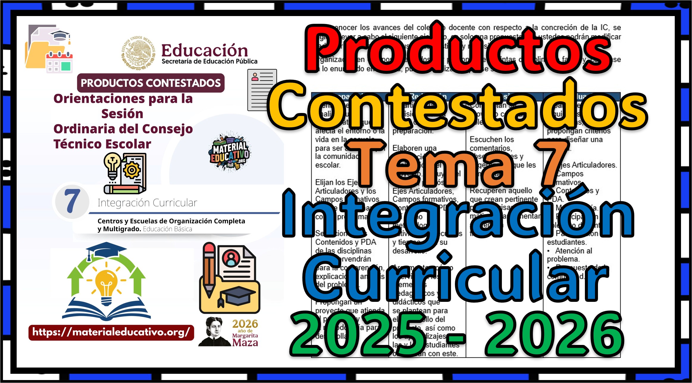 Compañeros que nos visitan queremos compartir con todos ustedes los Productos Contestados del Tema 07 Integración Curricular Para La Sesión Ordinaria del Consejo Técnico Escolar 2025 – 2026.