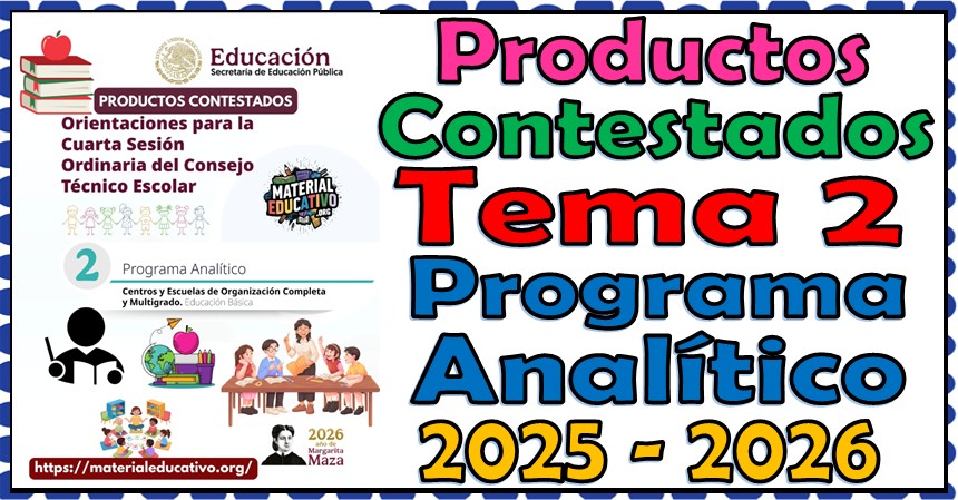 Compañeros que nos visitan, queremos compartir con todos ustedes los Productos Contestados de Tema 2: Programa Analítico Para la Sesión Ordinaria del Consejo Técnico Escolar 2025 – 2026.