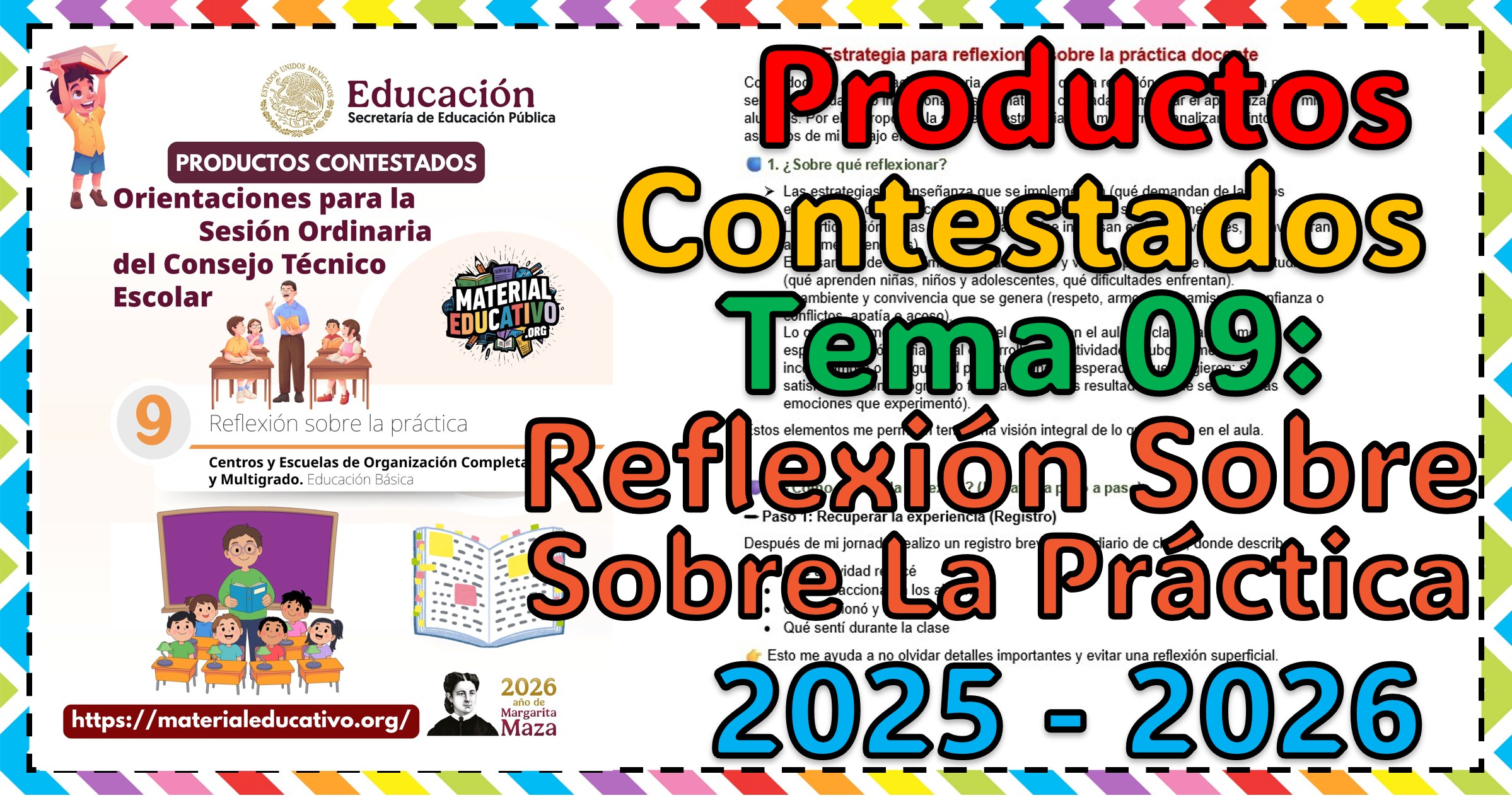 Accede a los Productos Contestados del Tema 9: Reflexión sobre la Práctica correspondientes a la Sesión del Consejo Técnico Escolar 2025–2026, diseñados especialmente para docentes de educación primaria que buscan mejorar su intervención pedagógica desde un enfoque crítico, consciente y transformador.
