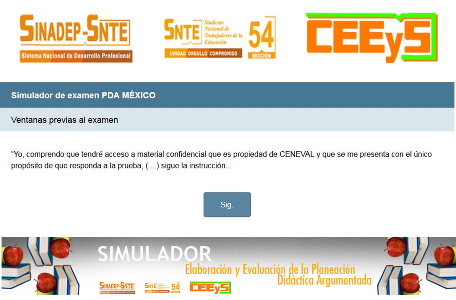 El SNTE mediante el SINADEP pone a disposición de todos los docentes que seremos evaluados o para nuestra preparación rumbo a la evaluación docente este simulador sobre la elaboración y evaluación de la planeación didáctica argumentada, estamos seguros que les será de gran apoyo para prepararse rumbo a su evaluación, agradecemos y les pedimos que compartan sus enlaces en sus redes sociales, compartan con todos sus conocidos y amigos esta importante información, gracias por su apoyo.