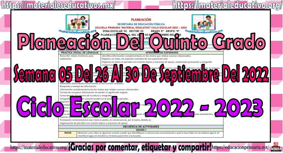 Amigos y amigas maestras que nos acompañan, queremos compartir con todos ustedes la planeación del quinto grado de primaria de…