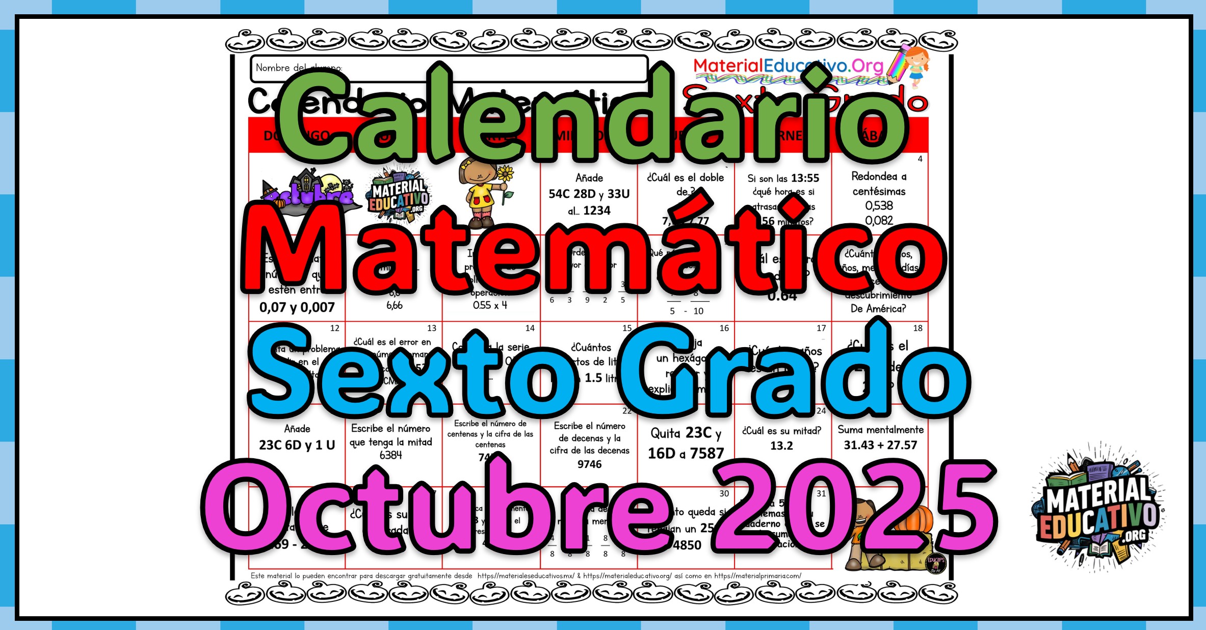 Compañeros que nos visitan, queremos compartir con todos ustedes el Calendario matemático del sexto grado del mes de octubre de…