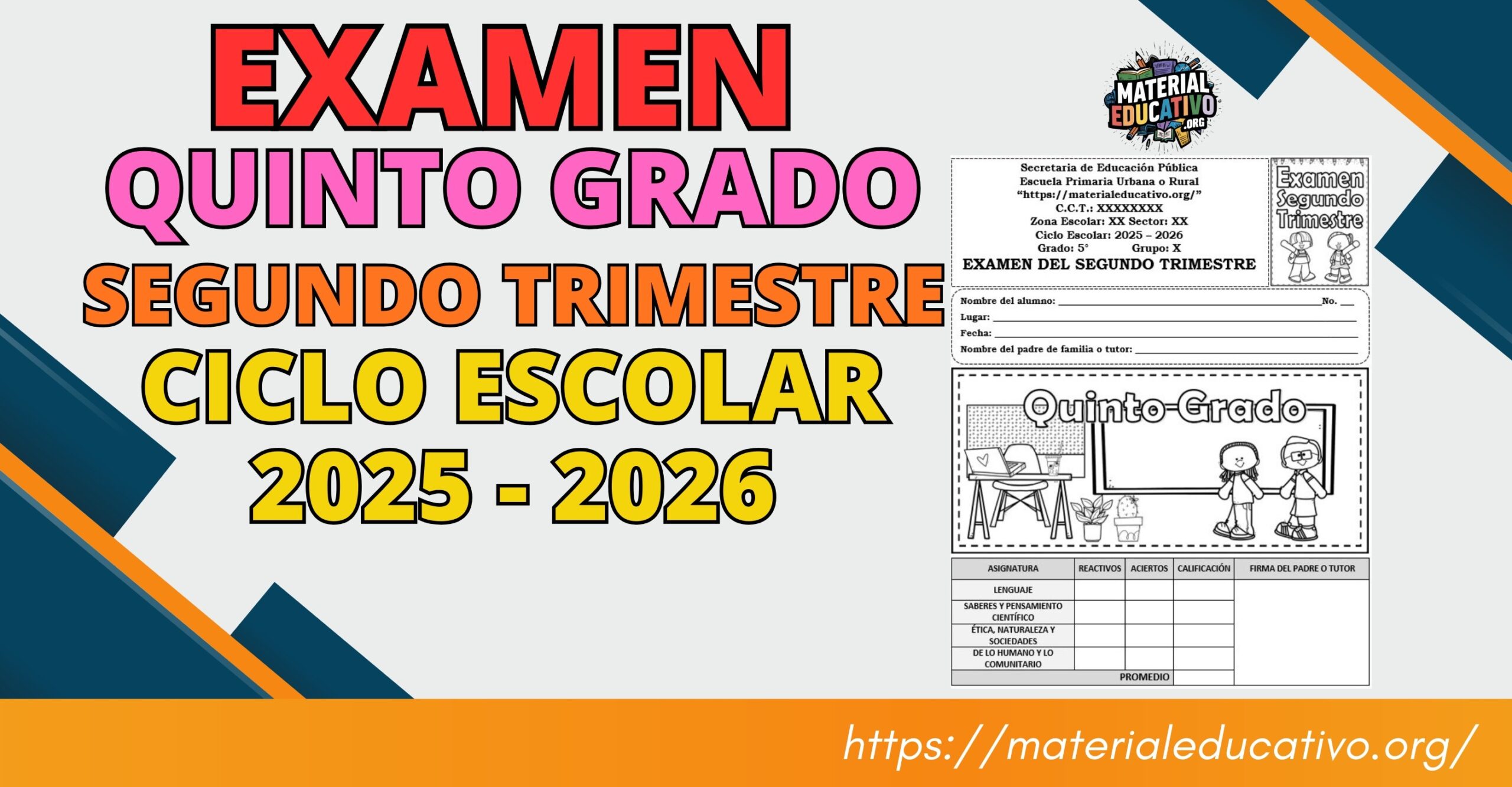 Compañeros que nos visitan, queremos compartir con todos ustedes el Examen del quinto grado del segundo trimestre del ciclo escolar…