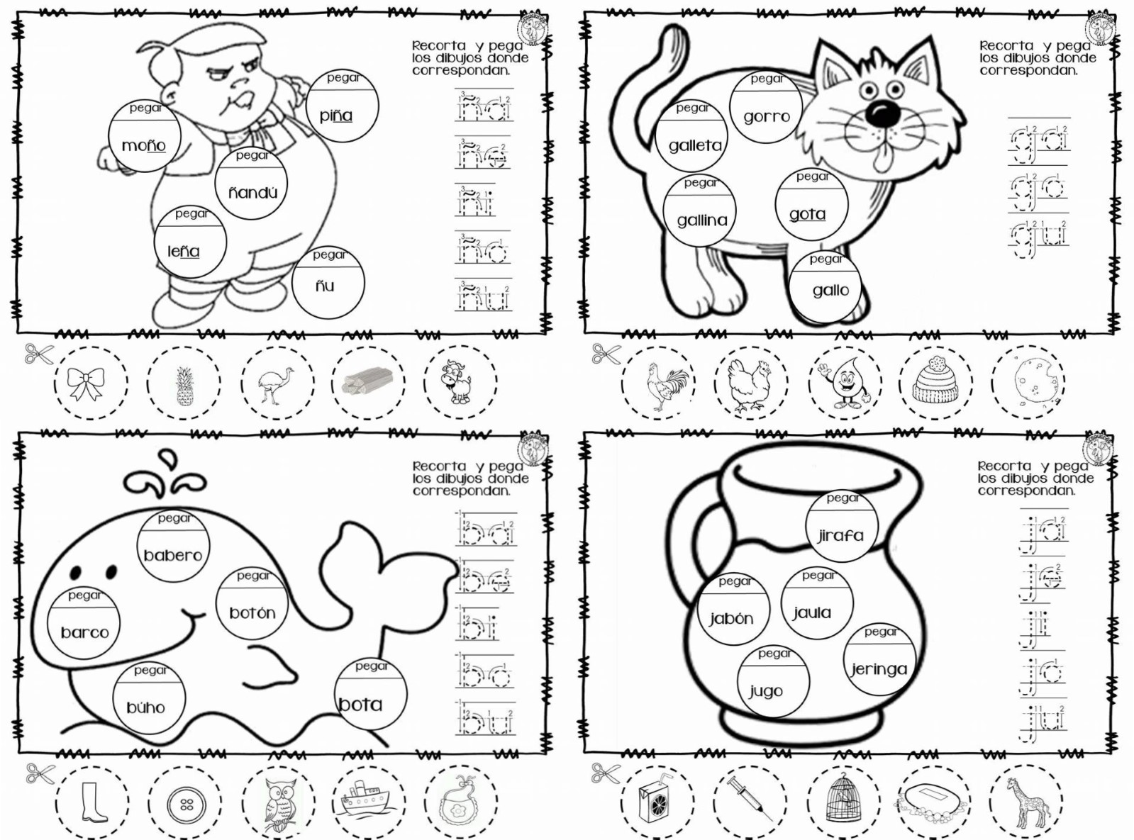 Excelentes fichas para trabajar las letras b, g, j y ñ para primer y segundo grado de primaria