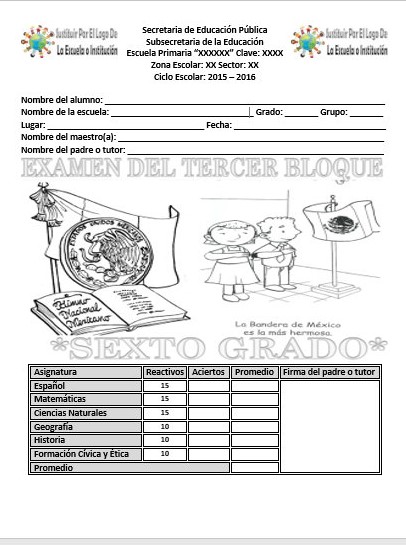 Les compartimos el examen del sexto grado para el segundo bloque del ciclo escolar 2015 – 2016, el cual aún…